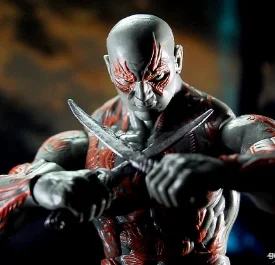 Imagine Liam Neeson from the film Taken, but then pretend his wife and daughter actually were killed. Well now you know what you need to know about Drax The Destroyer.
