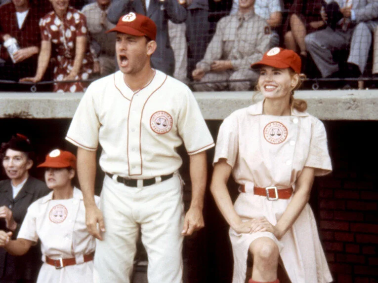 Initially Dugan thinks the woman’s baseball league is a joke, showing up to the games drunk and sleeping through most of it. But as the season wears on, he starts to respect the girls, especially Dottie.