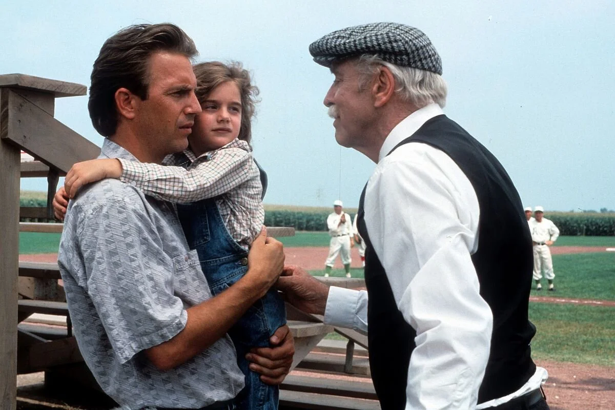 They return to Iowa where the ghost players have been waiting for Archie. In the middle of the game, Annie’s brother shows up and lets Ray know that the bank is foreclosing on their home and offers him a deal so they can keep the home and demands he sign. Refusing to sign because he believes that this “voice” hasn’t led him astray and his faith will see him through it, Annie’s brother Mark starts a confrontation that inadvertently injures Ray and Annie’s daughter Karen. Up to this point, Mark can’t see the ballplayers (because he doesn’t believe) but the game stops because of Karen’s injury and Archie comes running. He realizes that if he crosses the chalk line of the baseball field he won’t be able to return. He chooses to help and immediately becomes his older, physician self and saves Karen’s life. Ray realizes that Doc Graham can’t return to his younger self now and feels awful but Doc Graham stops him and thanks him for giving him the chance to achieve a dream.