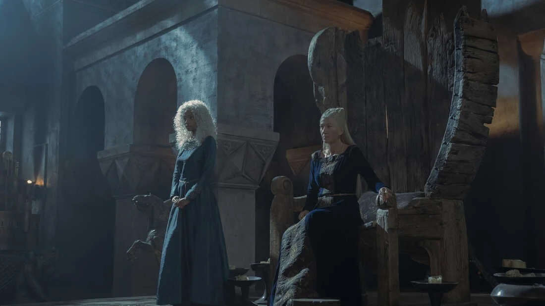 Rhaenys stands staring at the godswood tree. It’s been a while since she’s been back to the Red Keep. Rhaenyra and Rhaena come and greet her. Rhaenys gives her granddaughter a warm welcome, the Princess compliments Rhaenys on how well she’s raised Baela as her ward, and then asks Rhaena if she can speak with Rhaenys alone. She says that she had been trying to work out why Rhaenys would come to court, and then she realized that she wanted to come to put her own name in for the petition. Rhaenys doesn’t respond. Rhaenyra complains that it’s no fair hearing – it's just a trap to question her children’s legitimacy. “Yet you did worse for Laenor” Rhaenys responds. Rhaenyra explains she loved her son, and that she had no part in his “death”. She proposes a marriage between her son and Laena’s so that they can both rule Driftmark and the Seven Kingdoms together. Rhaenys states that it’s either a generous or desperate offer. What does it matter? Is Rhaenyra’s response. Rhaenys agrees – it doesn’t matter. She says that this will be the Hightower's first blow and they already have Rhaenyra on her knees. Her words hit the heir right where they were meant to. She’s right, after all.