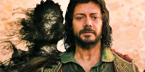 This episode opens with a war in Ghealdan in which Logain (Alvaro Morte)– the Dragon Reborn – is battling his way to the King. Once they are face to face, we get a gratifying scene that shows the inner workings of a male who can wield. As Logain speaks with the King of Ghealdan, a voice in his head tries to convince him to kill his enemy. It’s unsure if another Aes Sedai is speaking to him, as he seems annoyed with the words, or what exactly is going on because the last we saw of Logain, he was in a cage headed to the White Tower. A shadowed hand on his shoulder with the same weavings as his dark magic quickly clarifies what we are seeing. And what we are seeing is the Dragon Reborn trying to overcome the madness. He does successfully when he reaches out his dark and tainted weaves to heal the King instead of killing him, encouraging that they can work together.