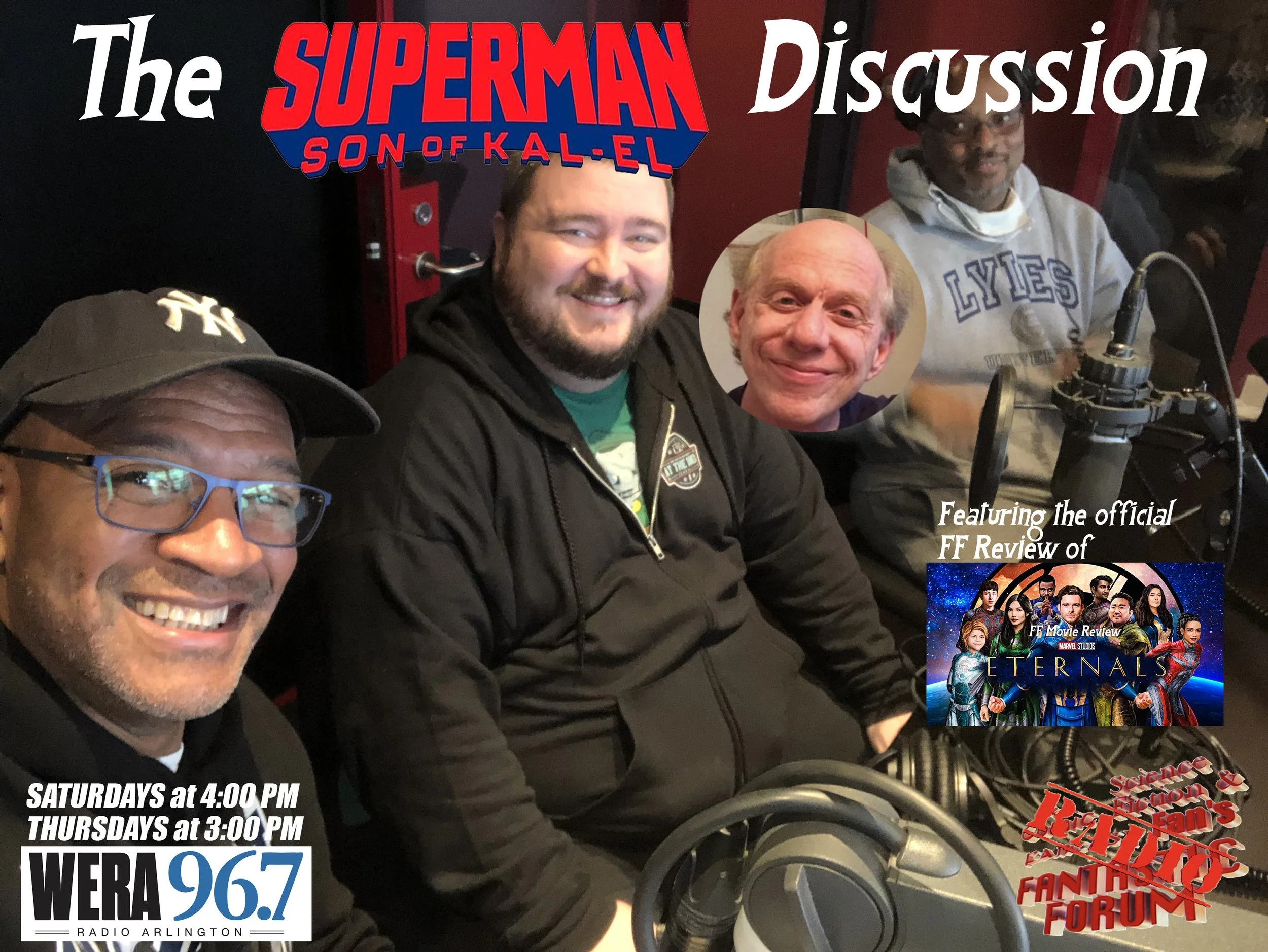 Ulie and panelists Bryan Lyles, James Rambo and Warren Bernard discuss recent developments with Superman including the slogan change and Jon Kent coming out as bi-sexual. Featuring the official, spoiler-free FF review of Marvel's, "Eternals," Directed by Chloé Zhao.
