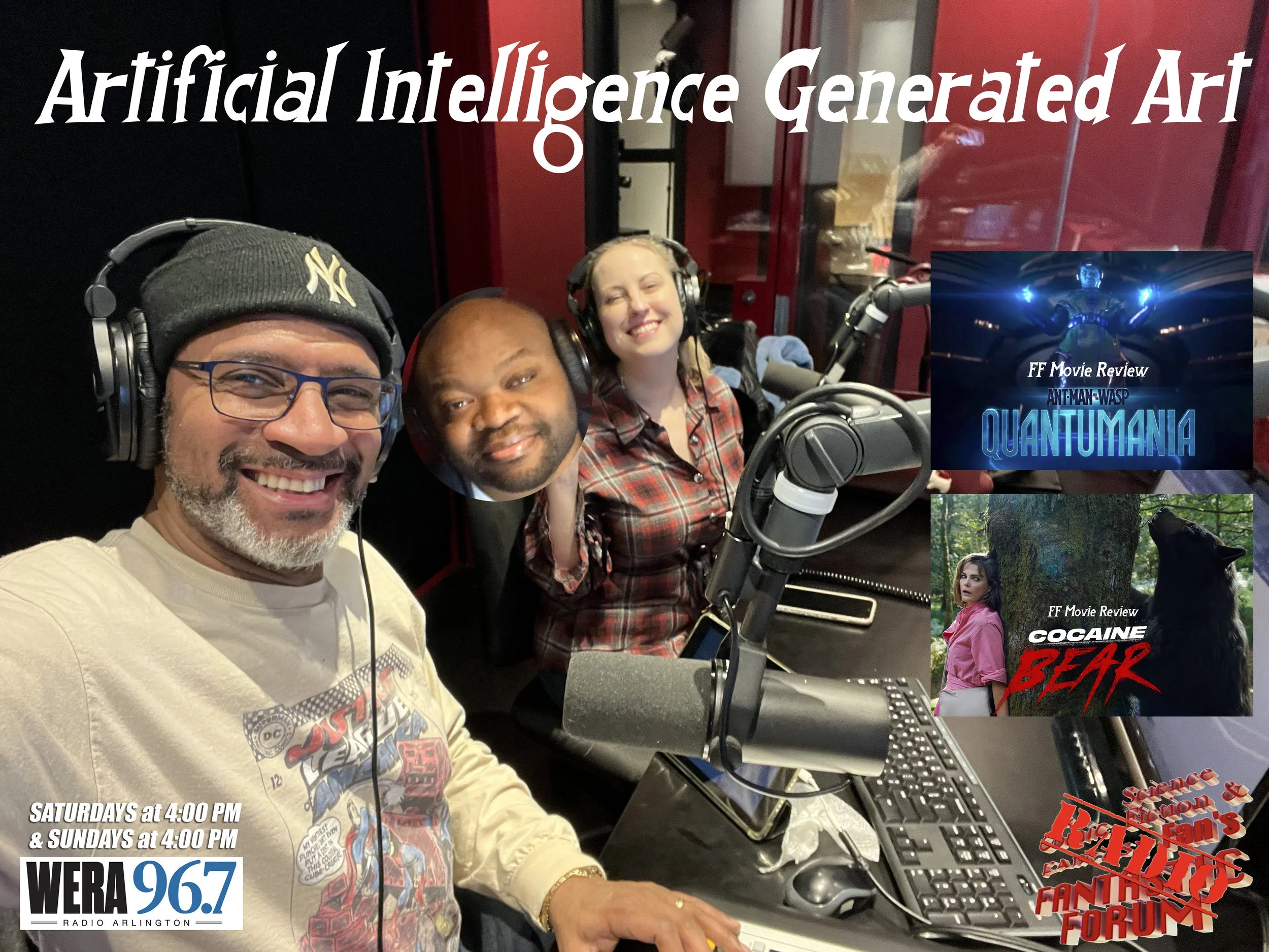 Ulie and panelists Emily Whitten and Phillip (Black Gorbachev) Jean-Pierre discuss the particulars of A.I. generated artwork. Featuring the official FF reviews of, "Cocaine Bear," and,"Ant-Man & The Wasp: Quantumania."