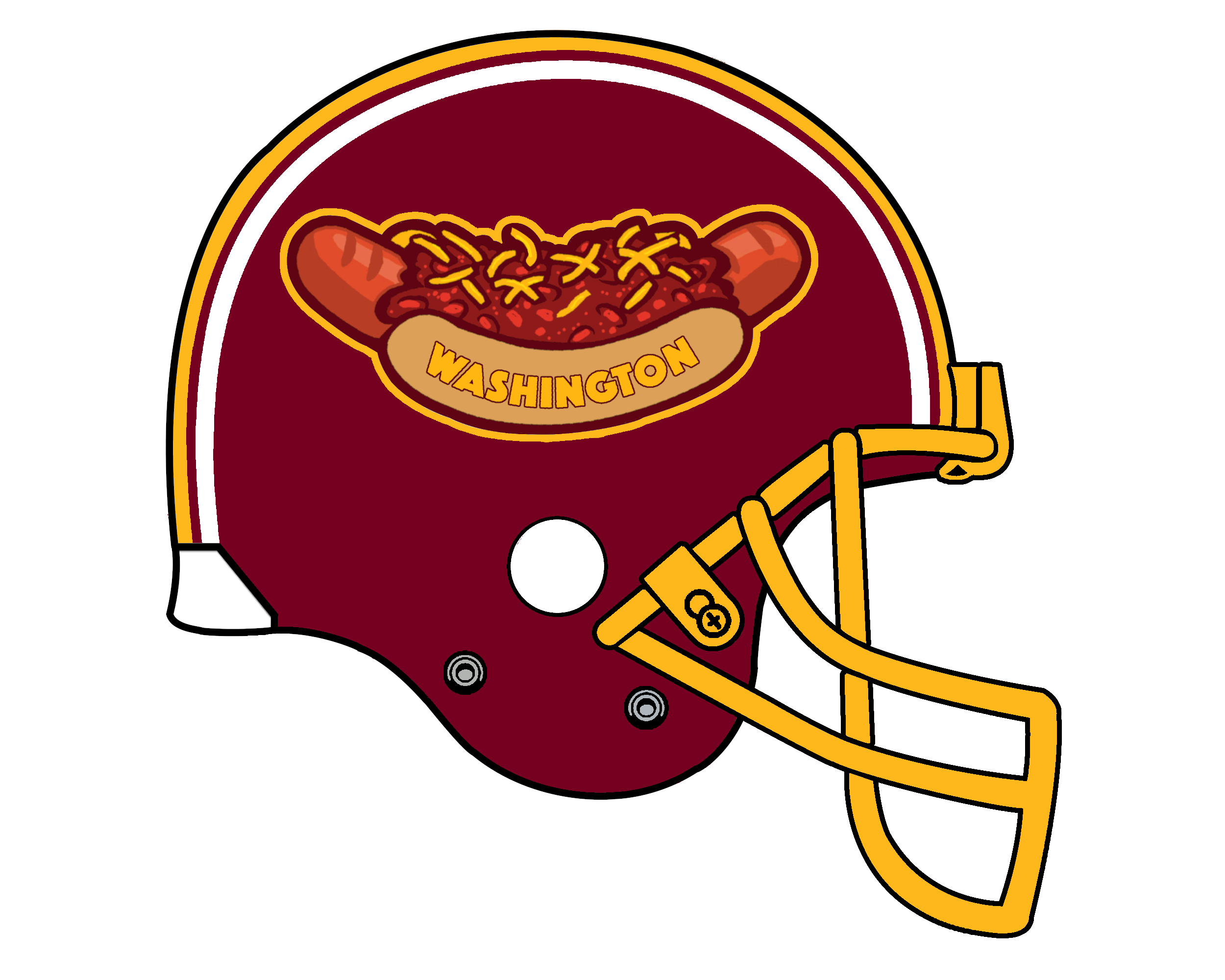 Maybe you’re unfamiliar with what a half smoke is. No worries. A half-smoke is similar to a hot dog, but usually larger, spicier, and smoked. Where hot dogs are typically one meat, half smokes are a pork-beef blend. Not only are they popular in the D.C. area, they were first made in the area, too. As pictured above, they are often served (correctly) with chili sauce on them. You can find them at hot dog carts and restaurants all around the city and surrounding areas. In fact if you’re a Foo Fighters fan like myself, you’ll know that Dave Grohl (a Northern Virginia native) name drops the first restaurant known to serve half smokes in the area, Weenie Beenie, as a track name on the Foo Fighters first album. However, Ben’s Chili Bowl is the most popular and iconic and if you’re going to have a half smoke and want the full DC experience at a place full of history, do it at Ben’s. So, the first “foodball team” idea was easy: The Washington Half Smokes.